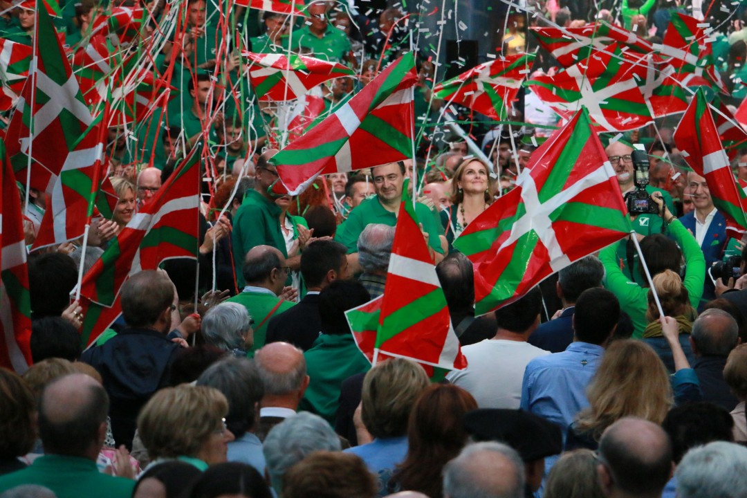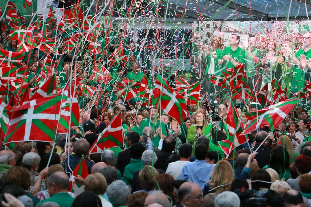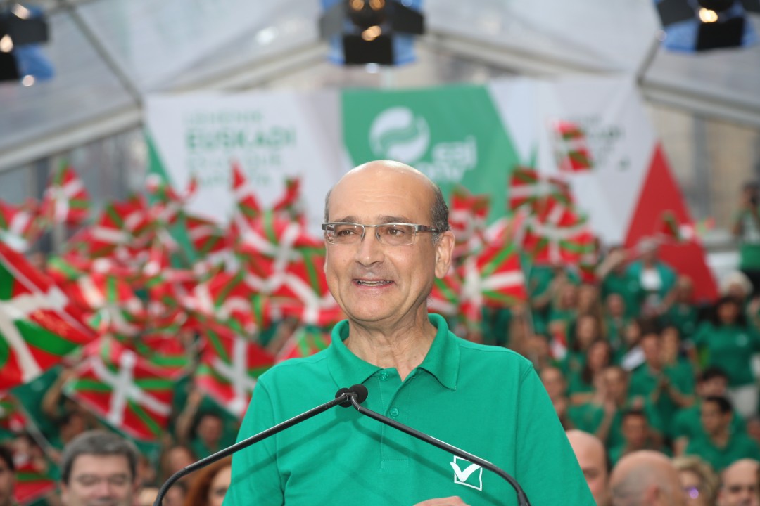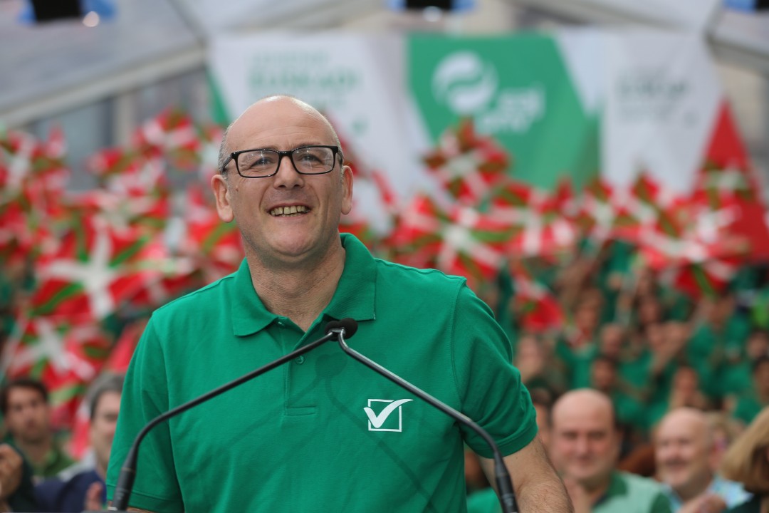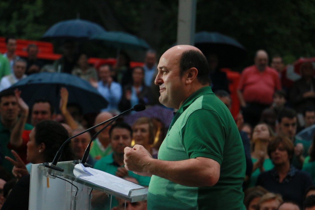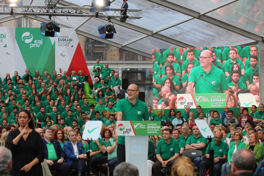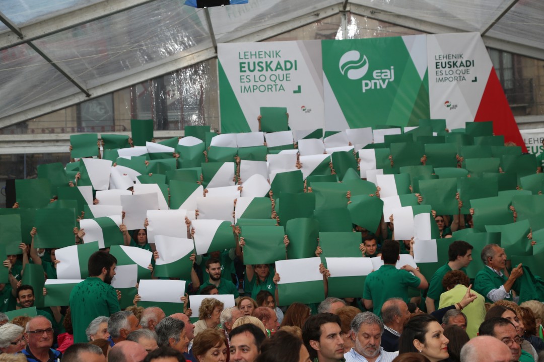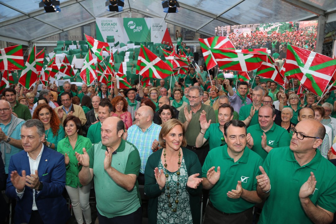 Bilbao. Mitina Arriaga plaza. Andoni Ortuzar, Iñigo Urkullu, Aitor Esteban, Joseba Agirretxea, Mikel Legarda