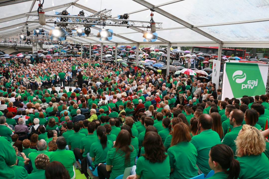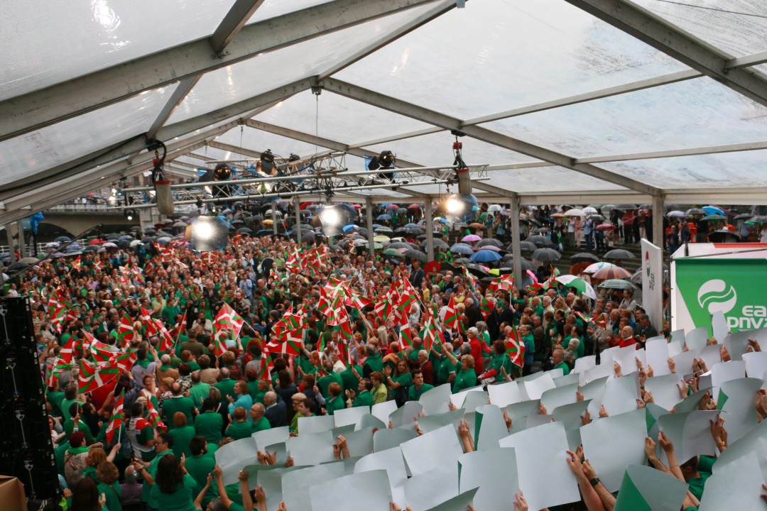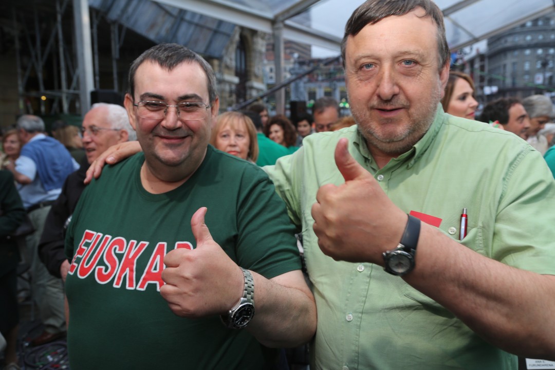 Bilbao. Mitina Arriaga plaza. Andoni Ortuzar, Iñigo Urkullu,   Aitor Esteban, Joseba Agirretxea, Mikel Legarda