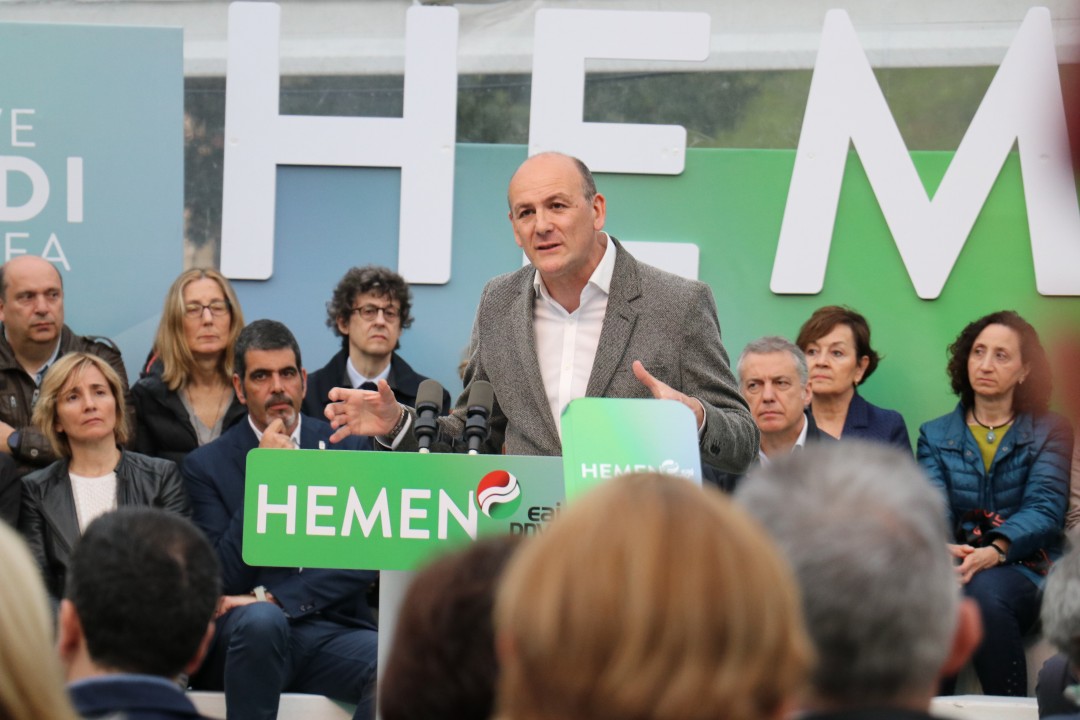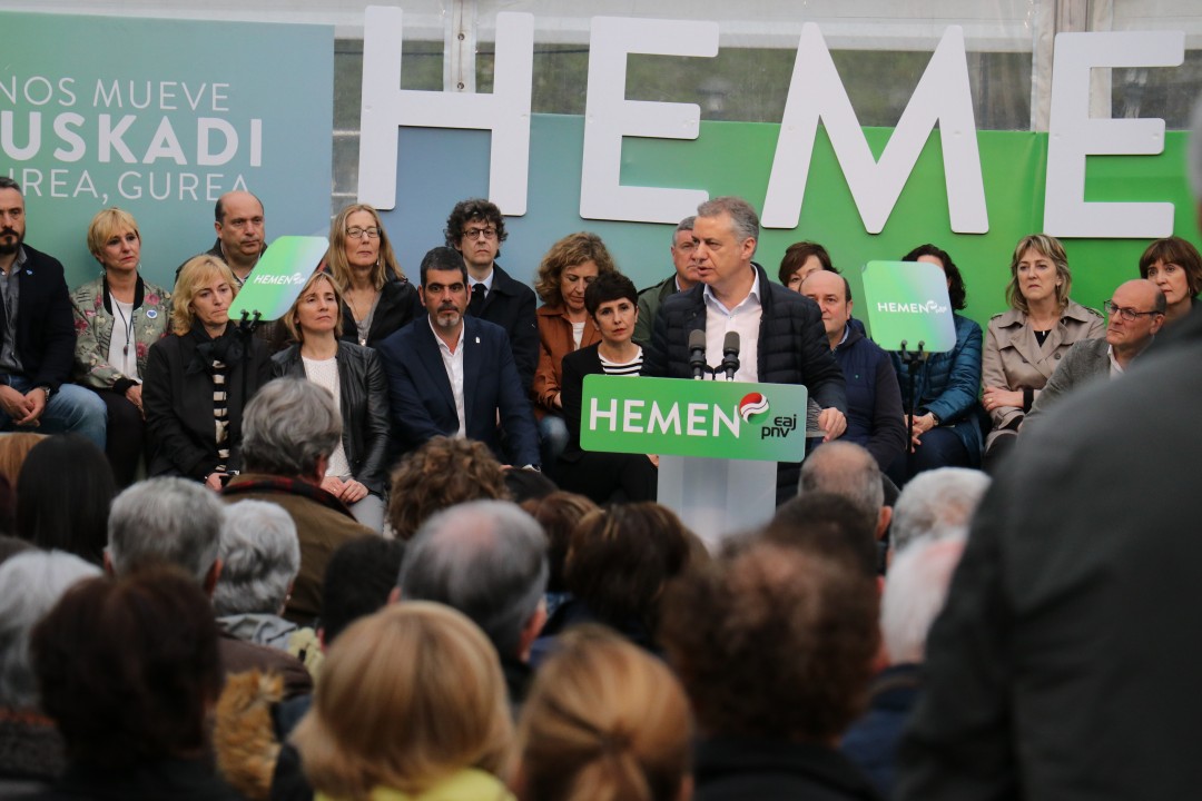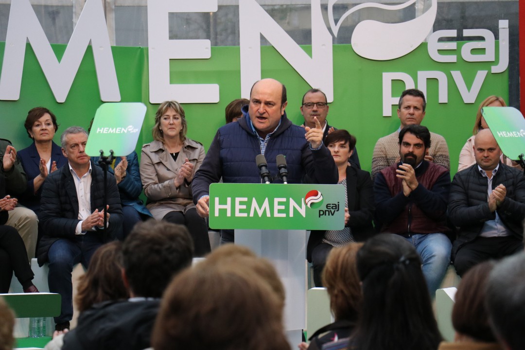 Mitina Donostia. Joseba Agirretxea, Maribel Vaquero, Eneko Goia, Iñigo Urkullu, Andoni Ortuzar